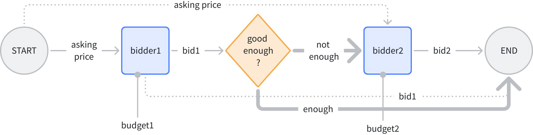 When orchestrating with Graph, due to the “type alignment” requirement, if f1 -> f2, then f1’s output type and f2’s input type need to be aligned, requiring one of two choices: