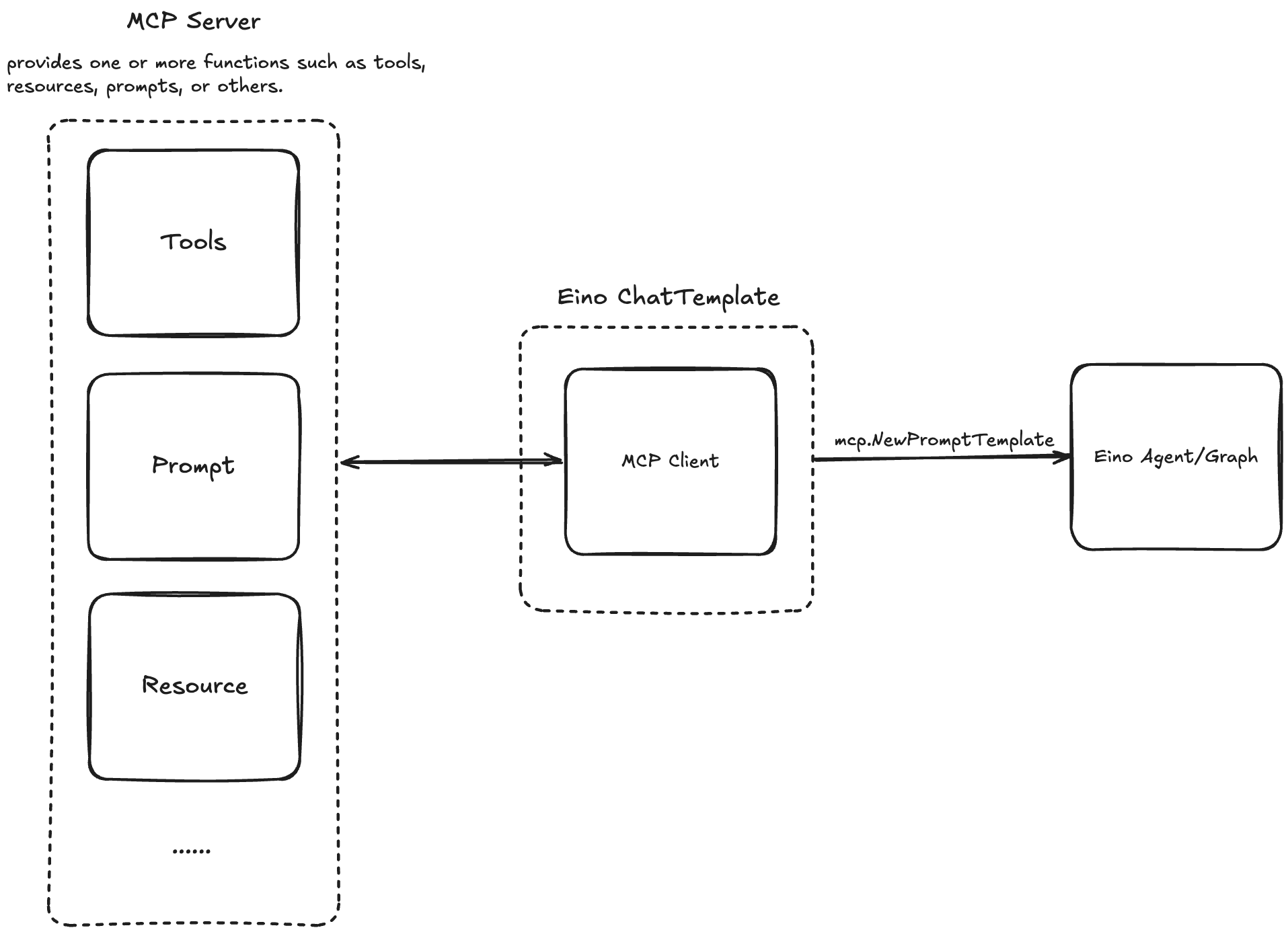 本节介绍 MCPPrompt 的封装,封装实现了 Eino ChatTemplate 接口(Eino: ChatTemplate 使用说明)。