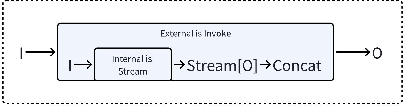 - If the component implements Stream, then wrap the Invoke with Stream, i.e., automatically concat the output stream.